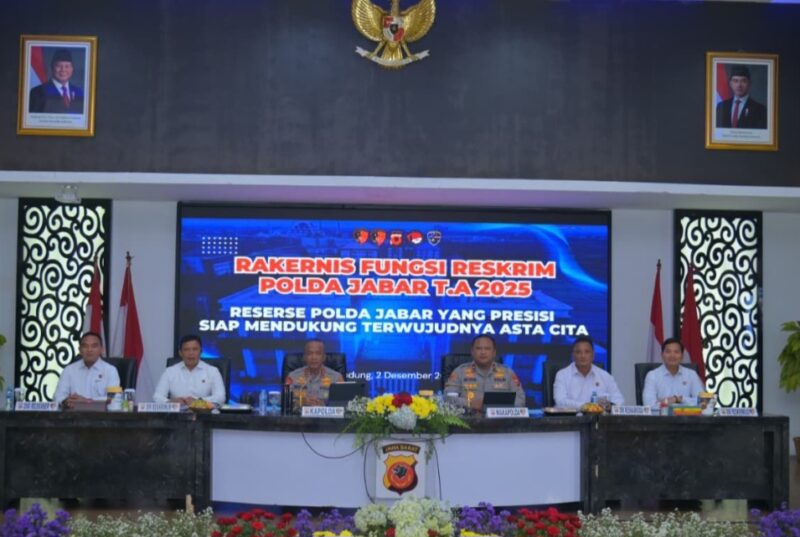 Polda Jawa Barat menggelar Rapat Kerja Teknis (Rakernis) Fungsi Reserse Kriminal Tahun Anggaran 2025, Selasa, (2/12/2025), di Aula Dit Lantas Polda Jabar, Kegiatan dipimpin Kapolda Jabar Irjen Pol Rudi Setiawan dan dihadiri pejabat utama serta penyidik dari Ditreskrimum, Ditreskrimsus, Ditresnarkoba, dan Ditresriber.