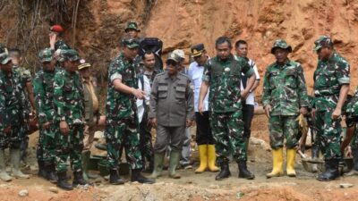 Usai dari posko pengungsian, Kasad meninjau pembangunan Jembatan Aramco yang dikerjakan oleh Satgas Penanggulangan Bencana Korem 023/KS. Jembatan tersebut menghubungkan Desa Hutanabolon dengan Desa Sigiring-giring dan menjadi akses vital bagi mobilitas masyarakat setempat pascabencana.