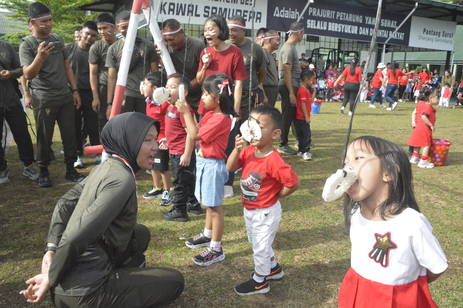 Kemeriahan Prajurit, Masyarakat, dan Anak Panti Asuhan Sambut HUT ke-67 Korem 023/KS dan HUT ke 80 RI.