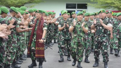 Usai tradisi penerimaan, Danrem 023/KS Kolonel Inf Iwan Budiarso menyampaikan rasa terima kasih kepada seluruh prajurit, PNS, dan Persit yang telah menyelenggarakan penyambutan tersebut.
