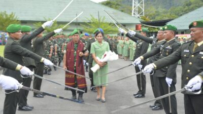Acara kemudian dilanjutkan dengan hormat jajar, Tarian Sekapur Sirih, tradisi pedang pora, serta penciuman Duaja Korem 023/KS sebagai puncak prosesi penyambutan.