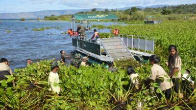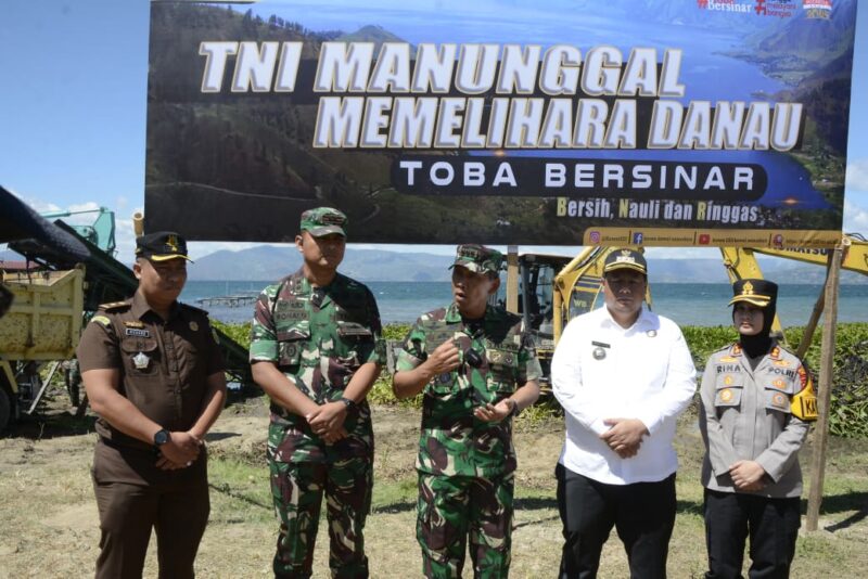 “Hari ini, kami TNI AD, khususnya Korem 023/KS, bersama Pemerintah Kabupaten Samosir melaksanakan pembersihan eceng gondok di kawasan pinggiran Danau Toba,” ujar Danrem.