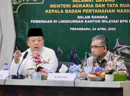 “Pak Presiden Prabowo menugaskan saya untuk memastikan penataan HGU dilakukan dengan prinsip keadilan, pemerataan, dan keberlanjutan ekonomi,” ujar Nusron saat memberikan arahan kepada jajaran Kanwil BPN Riau, Kamis (24/04/2025).