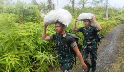 Satgas Bencana Korem 023/KS Berhasil Tembus Desa Terisolir Bonan Dolok Pasca Bencana Salurkan Bantuan.