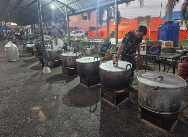 - Dapur Lapangan di Kantor Camat Batangtoru Kabupaten Tapanuli Selatan makan prajurit dan