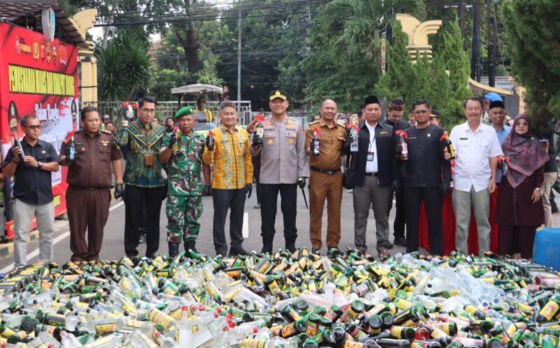 Barang bukti yang dimusnahkan terdiri atas 16.000 botol minuman keras berbagai jenis dan merek, serta 520 knalpot tidak standar atau knalpot brong yang kerap mengganggu ketertiban dan kenyamanan masyarakat.