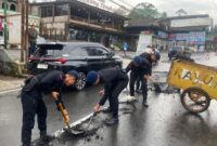 zonapers.com,Bandung. Personel Batalyon B Pelopor Sat Brimob Polda Jawa Barat sigap membersihkan material pasir dan kerikil yang menumpuk di Jalan Raya Tangkuban Perahu, Cikole…