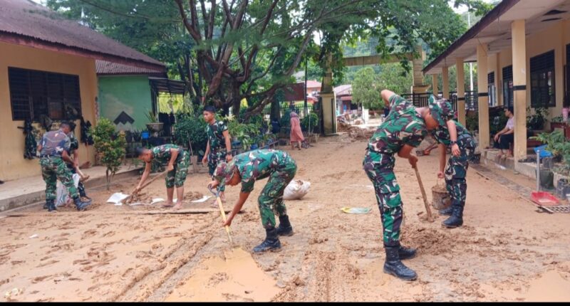 Dengan sigap, personel TNI diterjunkan ke berbagai lokasi terdampak untuk membantu proses pemulihan lingkungan, termasuk di SMAN 3 serta kawasan pemukiman masyarakat di Tukka yang mengalami kerusakan cukup parah.