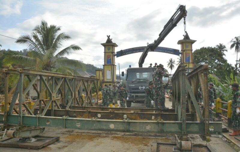 “Jembatan ini sangat penting untuk memulihkan konektivitas antar kabupaten. Kami mengerahkan personel terbaik dari Korps Zeni agar pemasangan jembatan dapat selesai secepat mungkin sehingga distribusi bantuan dan mobilitas warga kembali normal,” ujar Danrem”.